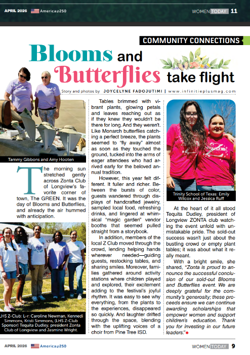 The morning sun stretched gently across Zonta Club of Longview’s favorite corner of town, The GREEN. It was the day of Blooms and Butterflies, and already the air hummed with anticipation.