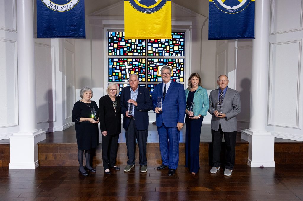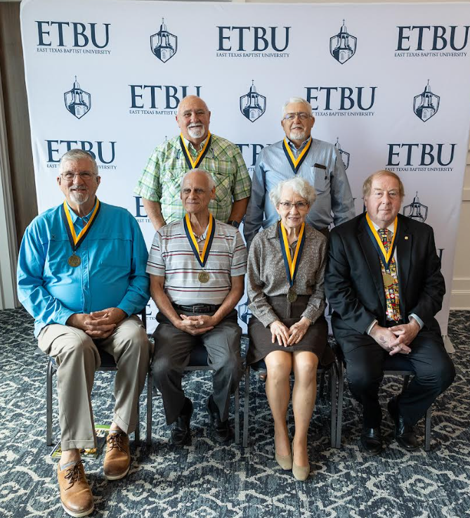 These ambassadors have provided generous financial support and countless volunteer hours to ETBU. The 2025 Golden Blazers are Jean (Atkinson) Davis (’97), Ruth (Atkinson) Hoffman (’77), and Billy Hoffman (’77). This year’s Alumni Awards honored Steve Akin (’73) with the Unsung Hero Award and Joshua Zamora (’10) with the Young Alumnus Award; Laura (Hopkins) Sammons (’98) accepted the J. Wesley Smith Achievement Award, Dr. Randall O’Brien (’85) was awarded the Alumni Achievement Award, and Claudia and Mac Abney were honored with the W.T. Tardy Service Award.