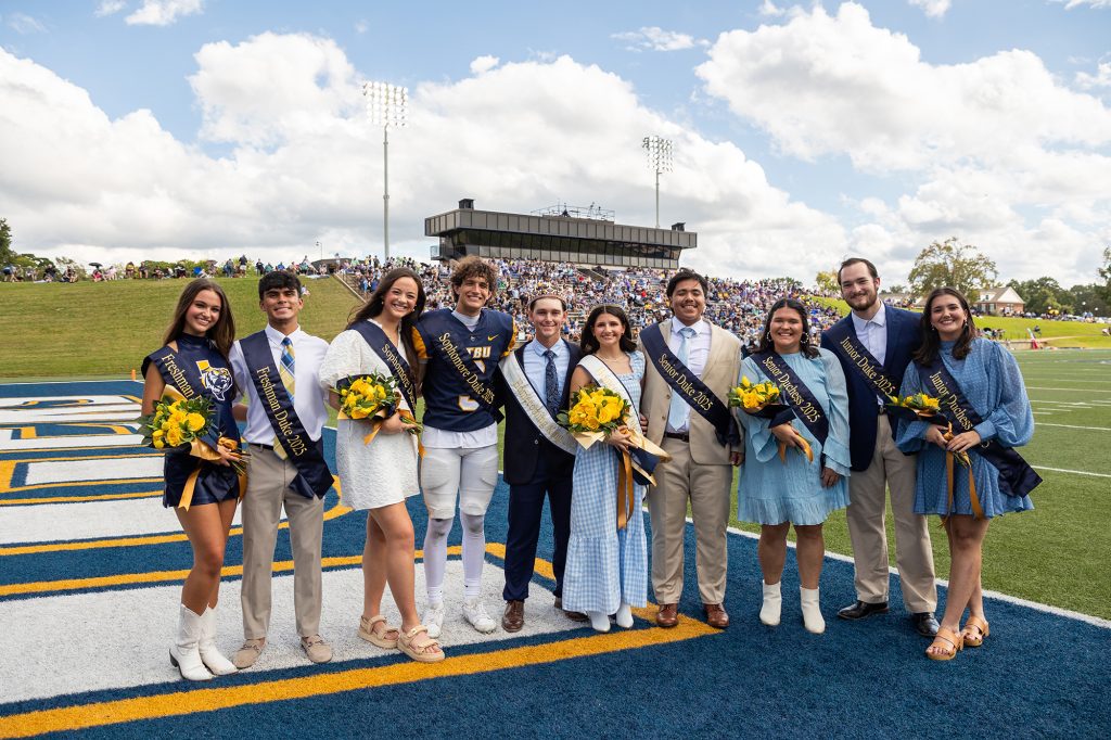 The 2025 Homecoming Court was revealed during halftime of the football game against Hardin-Simmons University. The court featured Freshman Duke and Duchess Noah Zarate and Katelynn Scott; Sophomore Duke and Duchess Mason Stancliff and Kirbee Webb; Junior Duke and Duchess Clayton Darby and Annsleigh Stewart; and Senior Duke and Duchess Carlos Jaral and Darcie Palmer. ETBU seniors Max Karseno and Christina Walbridge were crowned the 2025 Homecoming King and Queen.
