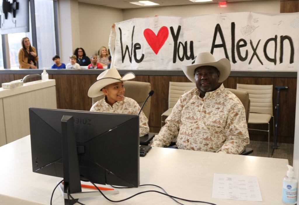When Alexander Kaine Johnson stepped into the 321st District Courtroom to be adopted on Friday, he was surprised to see about 45 fellow fifth graders from Bell Elementary School.